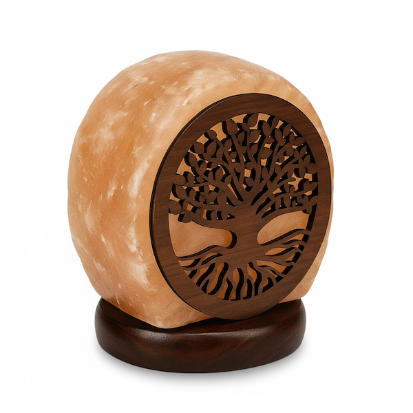 Denne Himalaya salt lampe er ideel for dig, der ønsker en varm, rolig og stemningsskabende belysning i dit hjem. Med en vægt på ca. 7–800 gram giver lampen en solid og naturlig tilstedeværelse, samtidig med at LED farveskiftet sørger for et beroligende og blødt lys i rummet. Forsidens smukke udskæring af Livets Træ skåret i træ giver lampen et både dekorativt og spirituelt udtryk, som skaber et levende og næsten magisk lysspil, når lampen tændes.