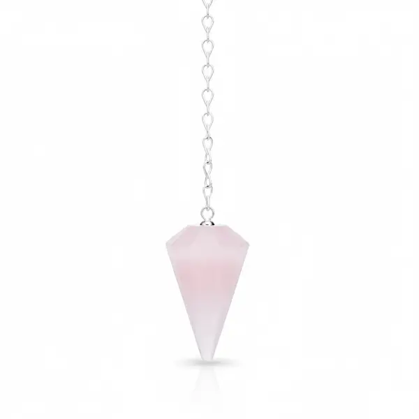 Dette smukke pendul i rosenkvarts er et elegant og funktionelt spirituelt redskab, der egner sig både til begyndere og erfarne brugere. Pendulet har et klassisk, facetteret design med en blød lyserød farve, der udstråler ro, harmoni og nænsom energi. Den fine sølvfarvede kæde fuldender udtrykket og giver pendulet et let og balanceret look.
