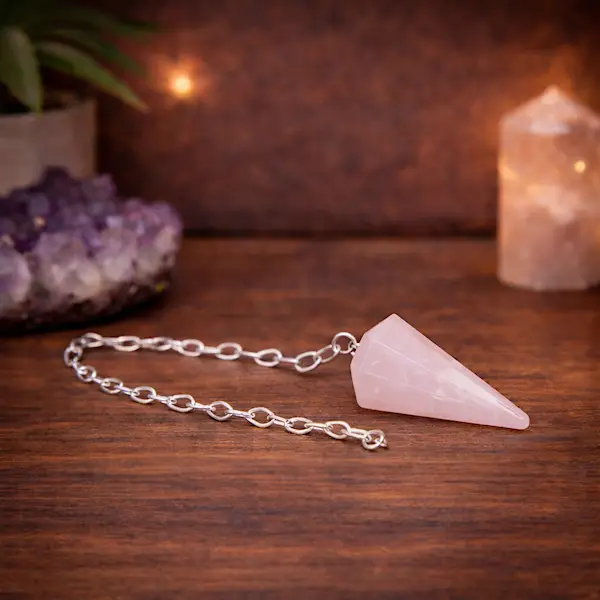 Når rosenkvarts anvendes i et pendul, tilfører den en rolig og støttende vibration til arbejdet. Det kan hjælpe med at skabe tryghed under pendulering og gøre det lettere at stole på sin intuition. Rosenkvarts kan være særligt gavnlig, hvis du arbejder med emner som relationer, selvværd, indre barn-arbejde eller følelsesmæssig balance.