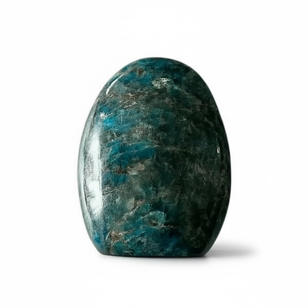 Blå apatit er kendt for sin kraftfulde energi og forbindes ofte med halschakraet. Den siges at styrke kommunikation, kreativitet og evnen til at udtrykke din sandhed. Som poleret freeform bliver dens intense energi både forfinet og forstærket – perfekt til både nybegyndere og erfarne krystalelskere.