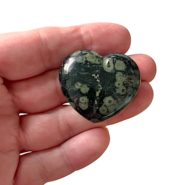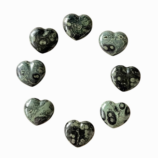 Hvert hjerte er omhyggeligt udskåret og poleret for at fremhæve den smukke grønne og sorte farve med karakteristiske mønstre, der gør hver sten unik. Kambaba Jaspis forbindes med hjertechakraet – kroppens energicenter for kærlighed, medfølelse og følelsesmæssige forbindelser. Denne sten støtter dig i at åbne og balancere hjertechakraet, hvilket fremmer følelser af kærlighed og indre fred.