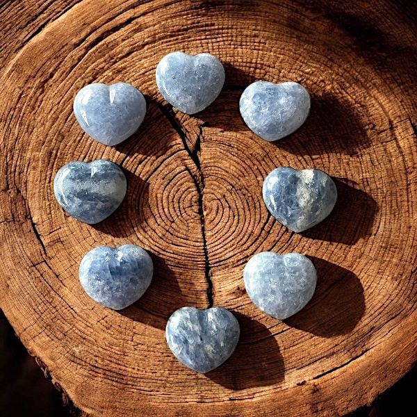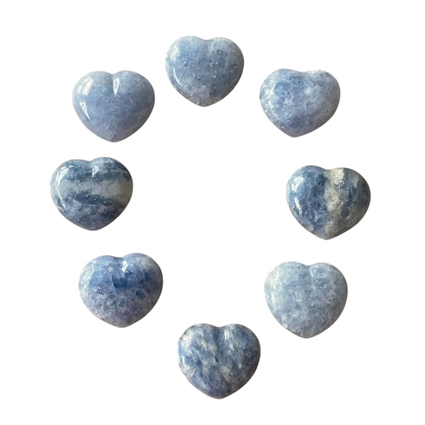 Smukke Hjerter i Blå Calcit – Energi af Indre Ro 35 mm