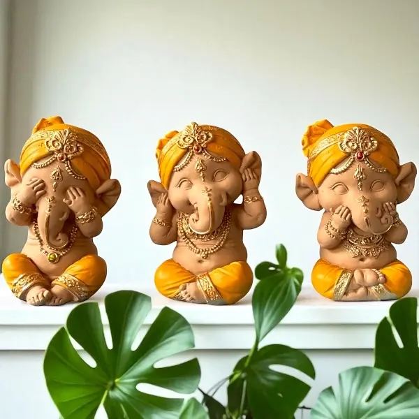 Baby Ganesha Trio Statue – Håndmalet Zen Dekoration og Spirituel Gaveidé til Hjemmet 🕉️