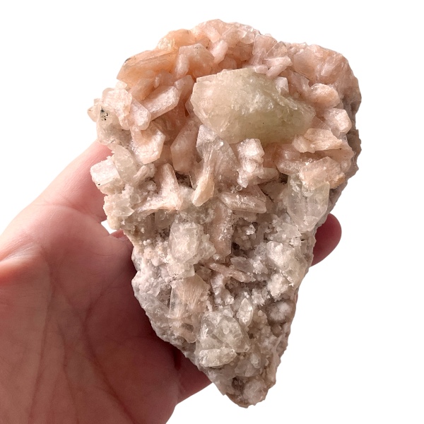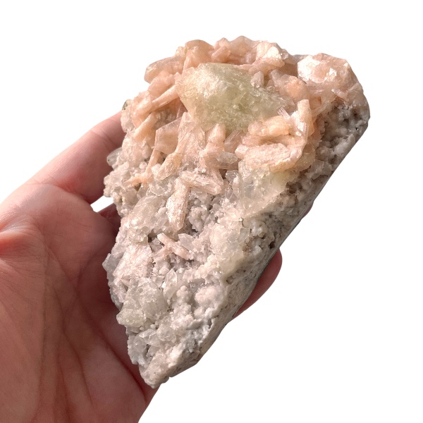 Uanset om du tiltrækkes af dens spirituelle egenskaber eller blot ønsker en smuk sten til din samling, vil denne zeolitklynge med rosa og grøn stilbit være et fantastisk valg.