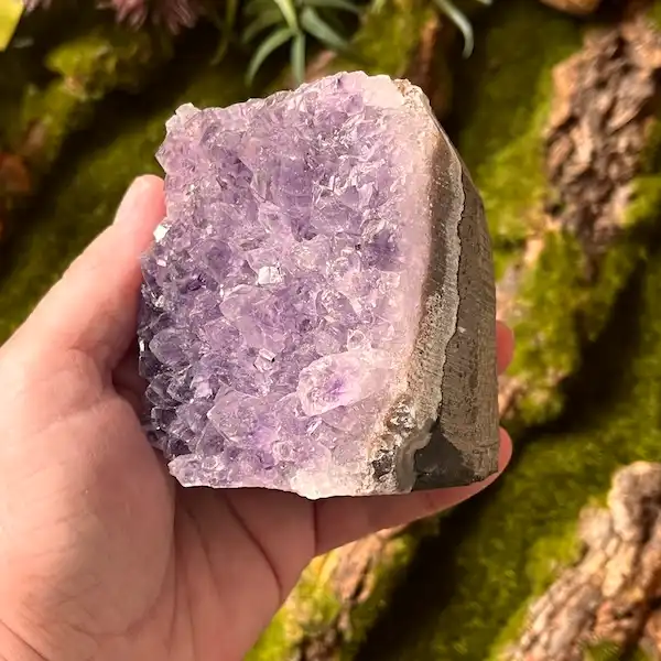 Smuk og unik druzy ametystklynge – 584 g rå krystal fra Uruguay 8 x 7,5 cm