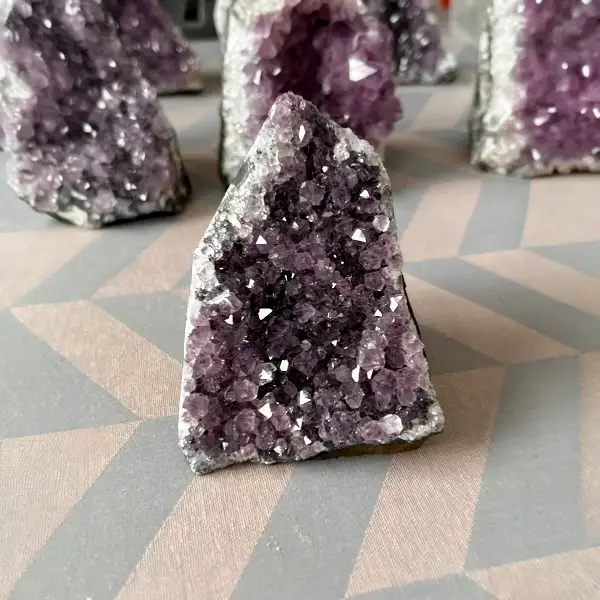 Ametyst er kendt for sine beroligende og rensende vibrationer. Den hjælper med at skabe klarhed i sindet, opløse negative energier og bringe en dyb følelse af harmoni og balance i dine omgivelser.
