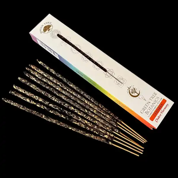Disse lækre botaniske røgelsespinde er skabt til dig, der ønsker at bringe mere harmoni, energi og ro ind i hverdagen. De er lidt tykkere end normale røgelsespinde og lavet af rene urter og æteriske olier, som giver en naturlig og autentisk duftoplevelse. Hver pind er designet til at støtte alle chakraer på én gang, så du kan opnå en helhedsorienteret balance i dit energisystem. Det gør dem ideelle til både begyndere og øvede, der ønsker at arbejde med chakrahealing, meditation eller energiarbejde uden at skulle vælge mellem forskellige typer røgelse.