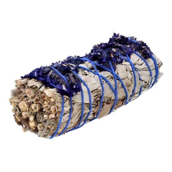 Blå sinuata, også kendt som "blå lavendel", tilføjer en blid beroligende kvalitet til smudgesticken. Dens naturlige egenskaber styrker kommunikation, indre ro og intuition. Det er den perfekte plante at inkludere i din spirituelle praksis, især når du arbejder med at åbne og rense halschakraet.