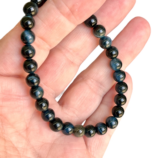 Oplev den dybe, mystiske glød fra disse fantastiske håndlavede elastiske krystal armbånd i falkeøje/blå tigerøje. Hvert armbånd er designet til at tilføre et unikt, elegant element til din smykkesamling, og stenens blålige nuancer giver et stilfuldt og kraftfuldt udtryk. Perfekt til både daglig brug og særlige lejligheder, dette armbånd bringer balance og styrke til dit håndled.