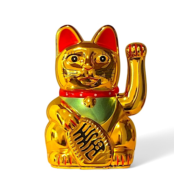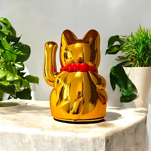 Med sin rolige, vinkende bevægelse inviterer figuren til velstand, flow og harmoni – noget, mange sætter pris på i både hverdag og forretning. Den gyldne farve forbindes især med økonomisk held, og figuren er elsket for sit imødekommende og opløftende udtryk.