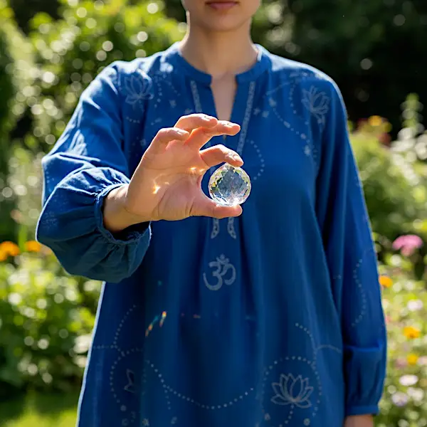 Regnbuekrystaller fungerer som små solfangere. Når sollys rammer kuglens mange facetter, brydes lyset og kastes ud i rummet som små dansende regnbuer. Farvespillet skaber en nærmest fortryllende stemning, som kan løfte energien og gøre rummet både lettere og mere levende.