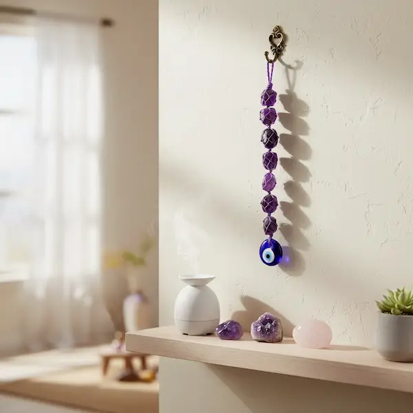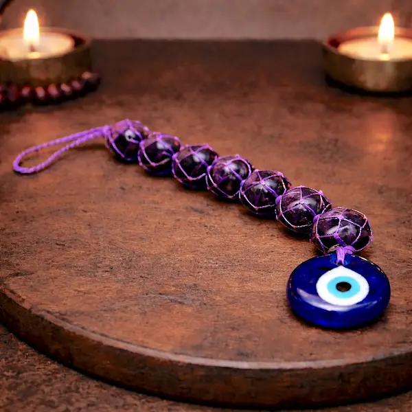 Det tyrkiske øje har i århundreder været brugt som beskyttelse mod misundelse, negativ energi og det onde øje. Sammen med ametystens rolige og høje vibration skaber det en kraftfuld kombination af beskyttelse og spirituel ro.