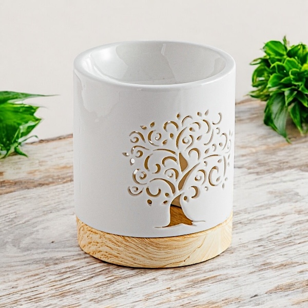Hvid Keramisk Aromalampe med Tree of Life – Skab Ro og Harmoni i Dit Hjem