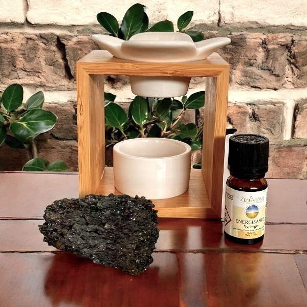 Du modtager en elegant aromalampe i bambus. Øvrige elementer på billederne medfølger ikke!