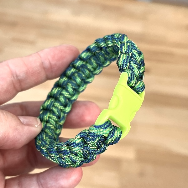 Håndlavet Paracord Armbånd i Slidstærkt Polyester i grøn, blå og gule nuancer ❤️