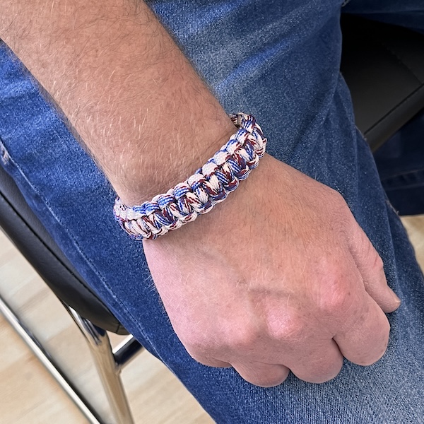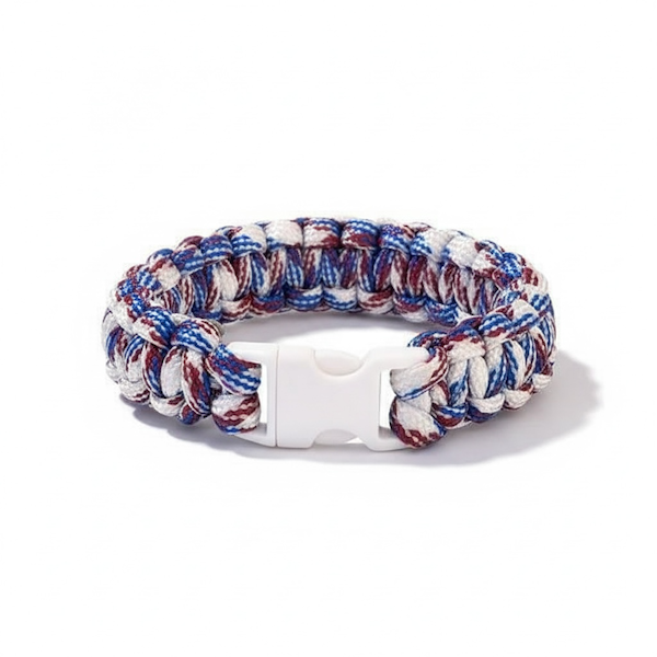 Håndlavet Paracord Armbånd i Slidstærkt Polyester i blå, røde og hvide nuancer ❤️