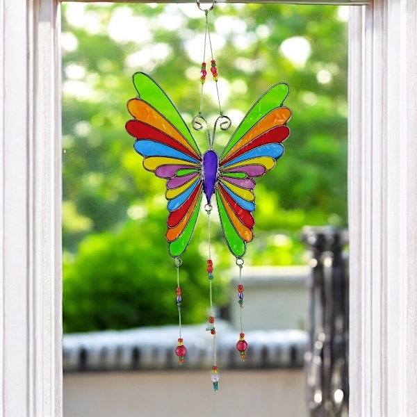 Denne håndlavede sommerfugle solfanger er også en oplagt gaveidé til enhver lejlighed – hvad enten det er til fødselsdag, jul eller som en betænksom gestus til en, der fortjener lidt ekstra farve og lys i hverdagen. Den unikke kombination af farver og glitrende perler gør den til et mindeværdigt og personligt valg.