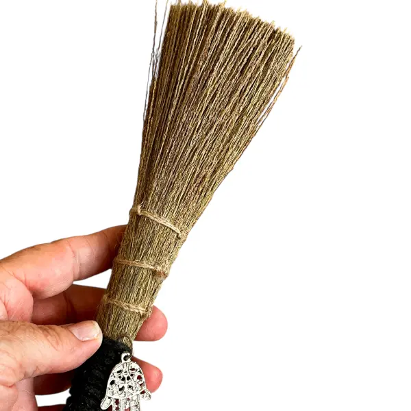 Det dekorative metalsymbol med hamsahånden gør denne kost til mere end blot et funktionelt redskab – det er et symbol på beskyttelse, styrke og åndelig harmoni. Hamsahånden er kendt som en kraftfuld amulet i mange kulturer og bruges til at afværge negativ energi og skabe en følelse af tryghed og balance.