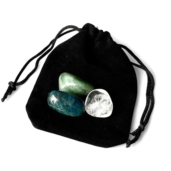 Klarhed & Flow - Krystalsæt til drikkevand med grøn aventurin, bjergkrystal og blå apatit