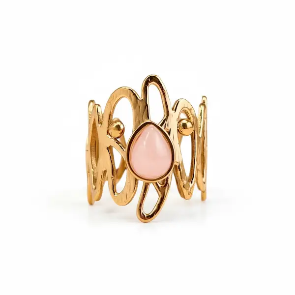 Den lyserøde Rosenkvarts kombineret med den gyldne forgyldning skaber et feminint statement, der både tiltrækker opmærksomhed og udstråler subtil elegance.