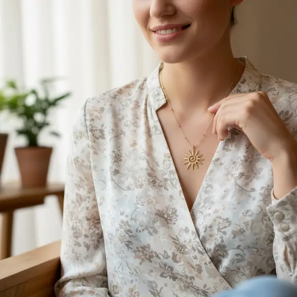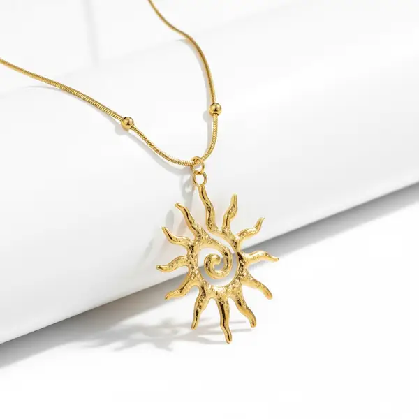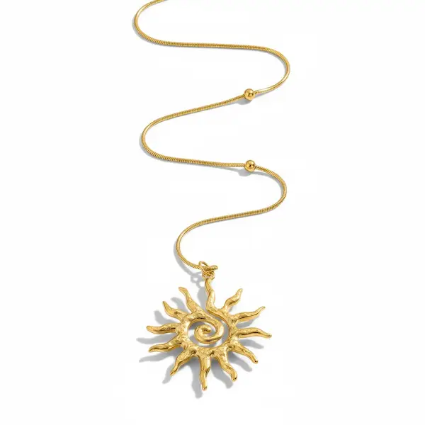 Solvedhængt halskæde i forgyldt rustfrit stål – et symbol på lys og indre styrke 🌞