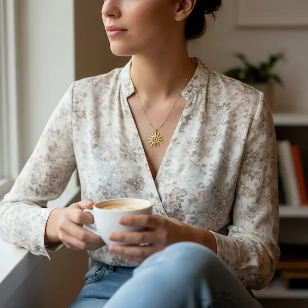 Denne smukke halskæde er en oplagt gave til en, du holder af – eller som en kærlig gave til dig selv. Den passer perfekt til enhver anledning, hvor du ønsker at fejre livets lys og glæde. Et smykke, der minder dig om at skinne, uanset hvor mørkt det måtte føles.