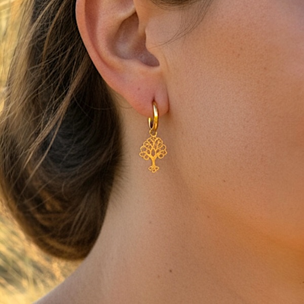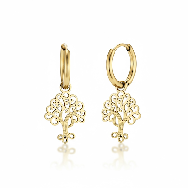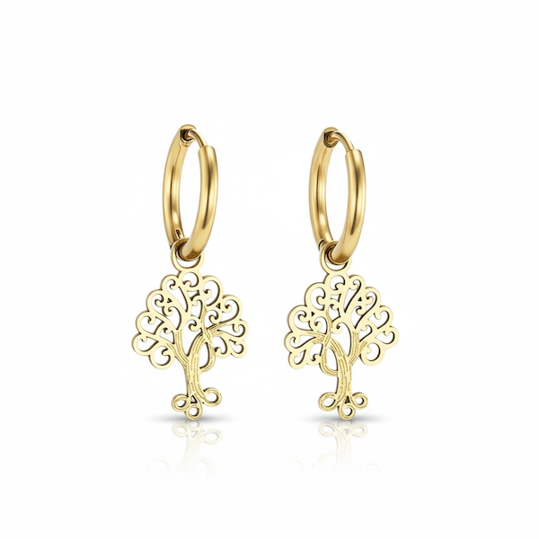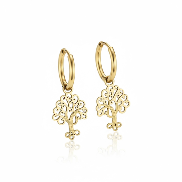 Spirituelle creoler i forgyldt stål med Tree of Life 🌳