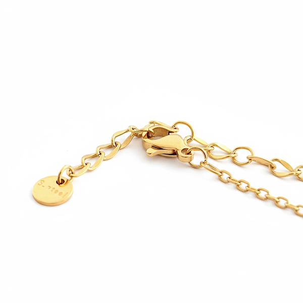 Kæden er lavet i forgyldt stål af høj kvalitet, hvilket betyder, at den er både vandafvisende og modstandsdygtig over for misfarvning. Den bliver ikke sort og kræver minimal vedligeholdelse. Du kan trygt bære den hver dag, også selvom du har sensitiv hud – den er helt fri for nikkel, cadmium og blysalte. Det gør den til et sikkert valg for dig, der ønsker et smukt smykke uden at gå på kompromis med kvalitet eller sundhed.