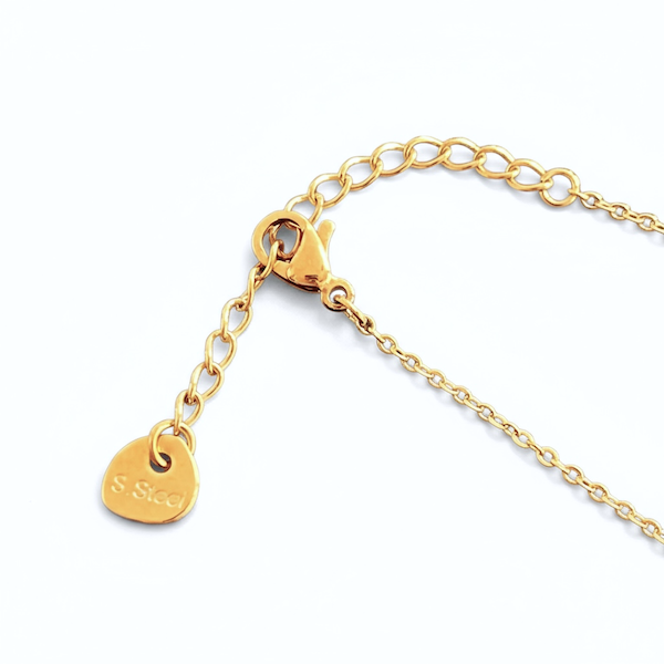 Kæden er lavet i forgyldt stål af høj kvalitet, hvilket betyder, at den er både vandafvisende og modstandsdygtig over for misfarvning. Den bliver ikke sort og kræver minimal vedligeholdelse. Du kan trygt bære den hver dag, også selvom du har sensitiv hud – den er helt fri for nikkel, cadmium og blysalte. Det gør den til et sikkert valg for dig, der ønsker et smukt smykke uden at gå på kompromis med kvalitet eller sundhed.