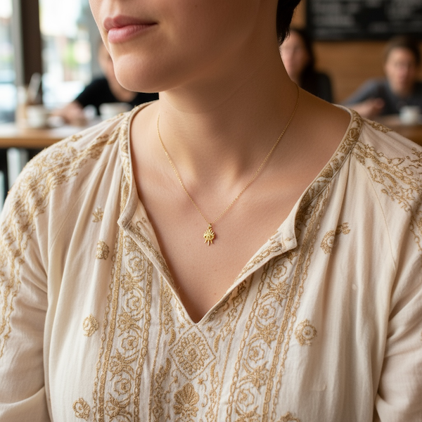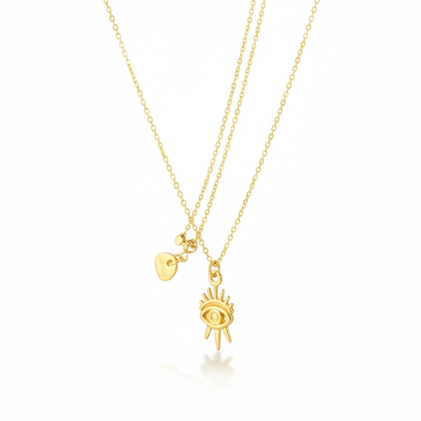 Denne forgyldte stålhalskæde passer perfekt til både kvinder og mænd. Den kan bæres alene som et enkelt udtryk for lys og styrke – eller sammen med andre kæder for et mere personligt look. Det gyldne materiale fremhæver øjets symbolske kraft og gør smykket tidløst og alsidigt.