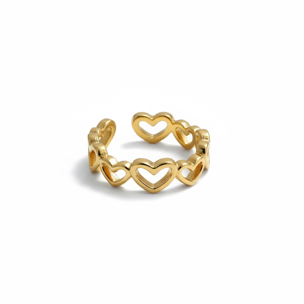 Smuk justerbar hjertering i forgyldt eller stål ✨