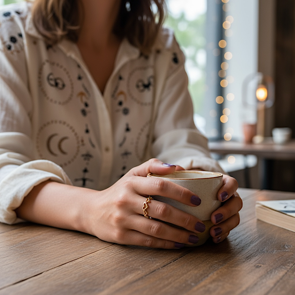 Denne ring er ideel til meditation, yoga, energiarbejde eller som en spirituel reminder i din dagligdag. Den kombinerer enkel, stilfuld elegance med dyb symbolik og bliver hurtigt et meningsfuldt smykke, der følger dig gennem dagen.