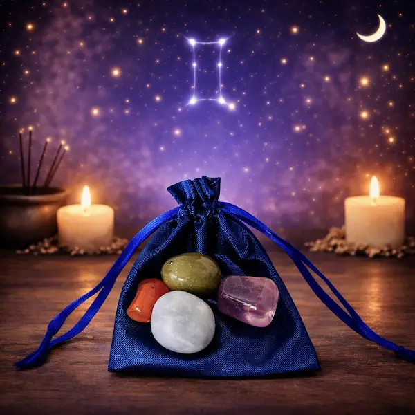 Dyk ned i den magiske verden af vores krystalsæt til Tvillingens tegn, særligt designet til at harmonisere med Tvillingens luftige, nysgerrige og alsidige natur. Dette stensæt understøtter mental klarhed, indre balance og personlig udvikling og hjælper dig med at forbinde dig med dine intellektuelle og kommunikative sider.