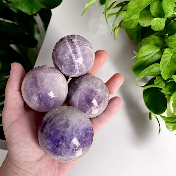 Håndpolerede båndametyst kugler i smukke nuancer 💜
