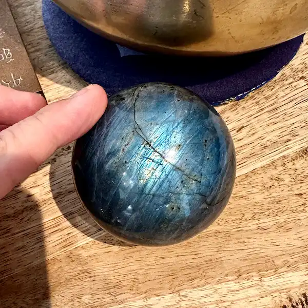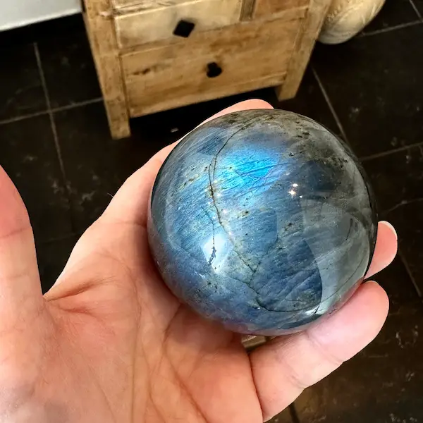 Unika labradorit kugle – beskyttelse, intuition og smukt blå flash 💙