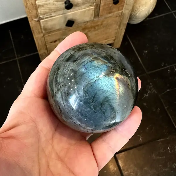 Denne labradorit kugle er både en dekorativ og energetisk stærk krystal – perfekt til dig, der ønsker et unikt stykke natur med dyb betydning.