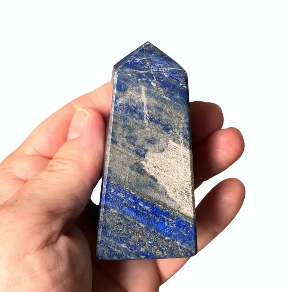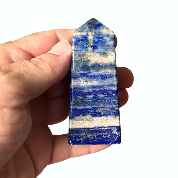 Opdag den magiske kraft i vores smukke unikke Lapis Lazuli tårne, som findes i forskellige vægtklasser og størrelser. Hos Gaia Sten & Krystaller kan du frit vælge dit foretrukne tårn fra vores omfattende variantliste, så du får netop det stykke, der passer til dit behov og din energi. Hvert tårn er nøje udvalgt for sin dybe, intense blå farve, de karakteristiske gyldne pyrit-inklusioner og den naturlige energi, som gør Lapis Lazuli til en af de mest elskede krystaller.