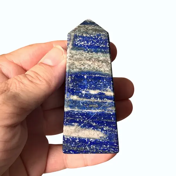 Vores Lapis Lazuli tårne er alle unikke med deres egne mønstre og nuancer, der afspejler stenens naturlige skønhed. Når du køber et tårn hos Gaia Sten & Krystaller, får du et produkt med gennemsigtig beskrivelse af størrelse, vægt og udseende, så du kan vælge det tårn, der virkelig taler til dig.
