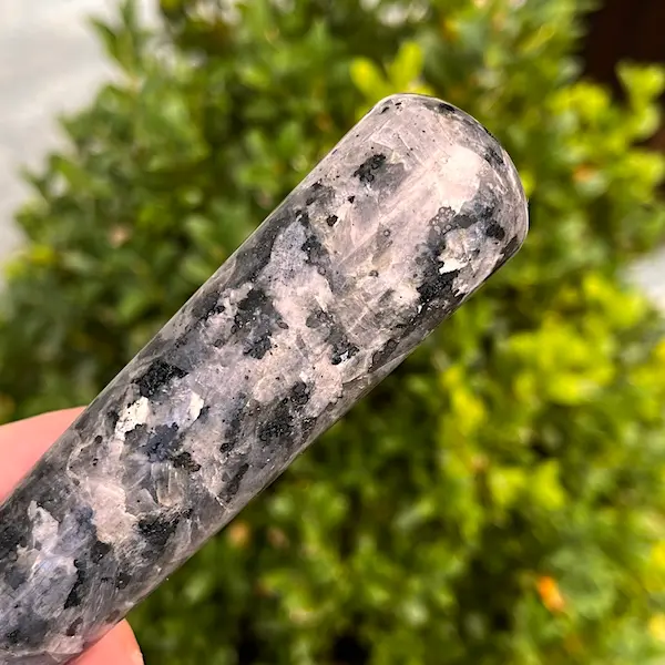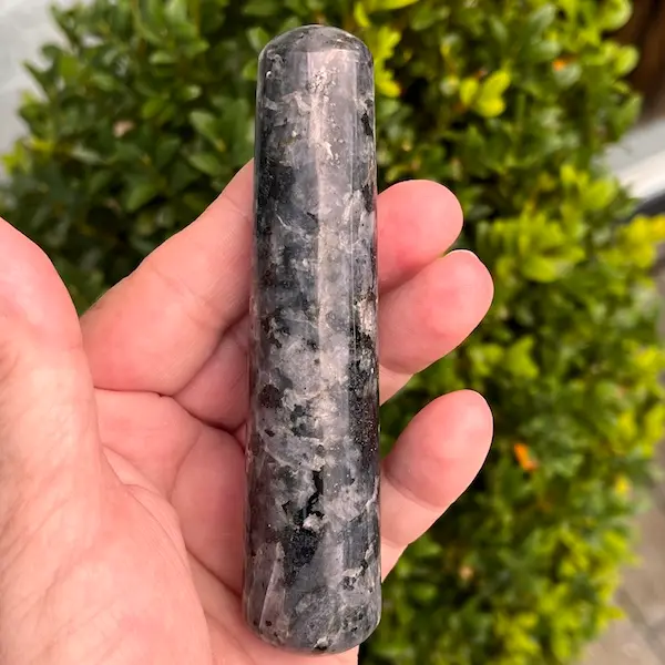Oplev den stabile energi og dybe grounding, som kun en ægte larvikit healerstav kan give dig. Denne smukke massagestav er slebet i en blød, rund form med afrundede ender, hvilket gør den ideel til både massage, energiarbejde og meditation. Med sit karakteristiske mørke spil af sølv, blå og grå nuancer – ofte kaldet "norsk månestensglans" – er larvikit både visuelt dragende og energetisk stærk. Det er en sten, der skaber ro i nervesystemet og hjælper dig med at stå stærkt i dig selv, uanset hvad der sker omkring dig.