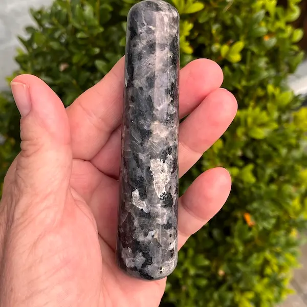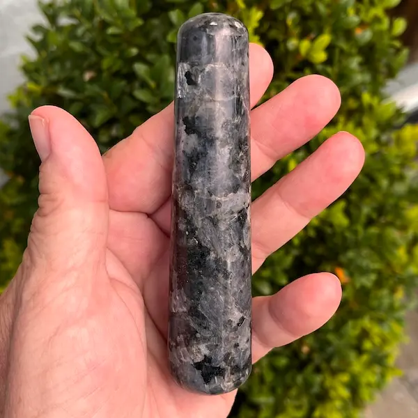 Som massagekrystal kan du bruge larvikitstaven til at løsne spændinger i nakke, skuldre og ryg. Den føles kølende og stabiliserende mod huden og kan være særligt gavnlig, når du føler dig mentalt træt eller har brug for at komme ned i kroppen igen. Staven kan også anvendes i meditation og energiarbejde, hvor du ønsker at skabe klarhed, rydde op i dine tanker og få kontakt til dybere lag af dig selv.