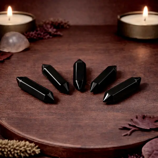 Dobbeltterminerede sort obsidian spidser – beskyttelse, grounding og flow 🖤