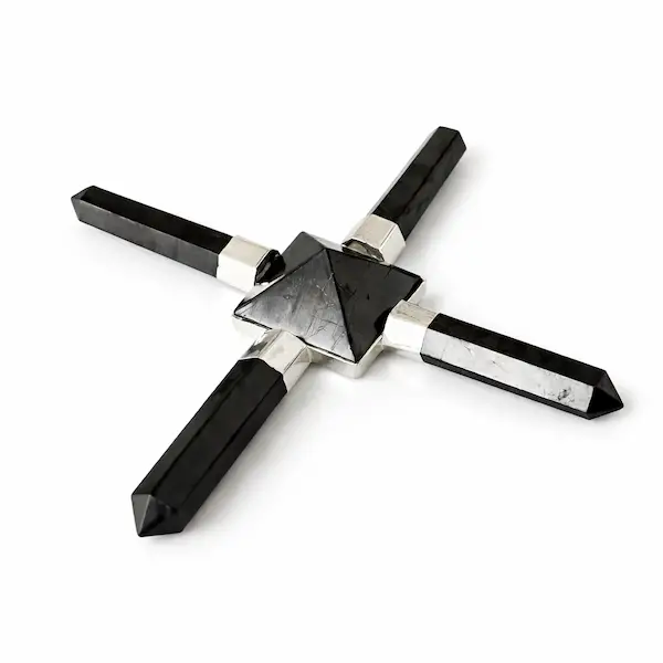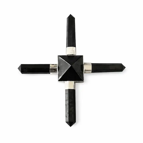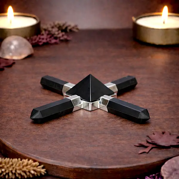 Denne shungit generator på 10 x 10 cm er et stærkt energetisk redskab til dig, der ønsker effektiv energirensning, beskyttelse og stabil jordforbindelse i dit hjem eller arbejdsrum. Generatorens form består af en central pyramide omgivet af fire dobbeltafsluttede spidser, der peger ud i hver sin retning. Denne konstruktion er kendt for at fordele og forstærke energien jævnt i rummet.