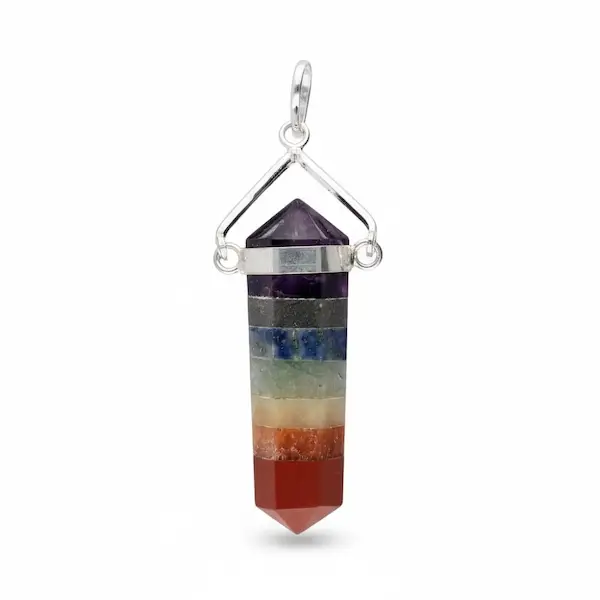 Dette smukke chakravedhæng er et kraftfuldt og harmonisk smykke, skabt til dig der ønsker balance, energi og spirituel fordybelse i din hverdag. Vedhænget er dobbeltermineret og slebet i en sekskantet form, som understøtter et frit og naturligt energiflow. Det måler ca. 4,5 x 1 cm og er monteret med nikkelfri metaldele. Der medfølger ikke halskæde, så du selv kan vælge den kæde eller snor, der passer bedst til dit udtryk og din intention.