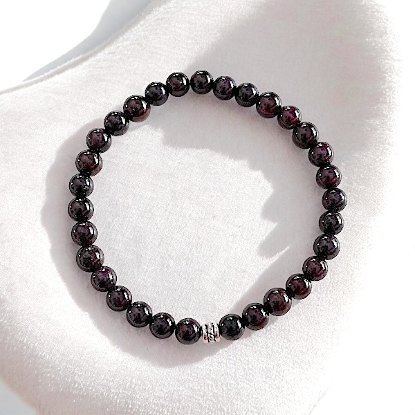 Håndlavet Krystal armbånd | rød granat | 6 mm. stenperler | Mål 16,5 - 19 cm