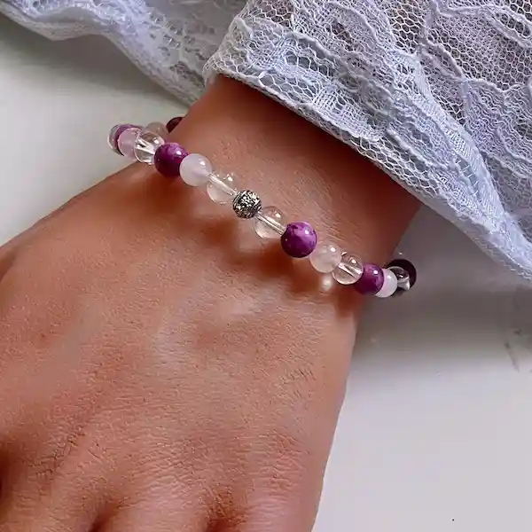 Eksklusive håndlavede krystalarmbånd mod stress og angst – Skab harmoni og indre ro med Bjergkrystal, Rosenkvarts og Lepidolit 💜