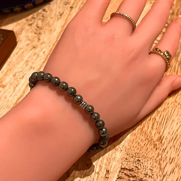 Pyrit krystal armbånd | 6 mm perler | Mål 16 - 18 cm