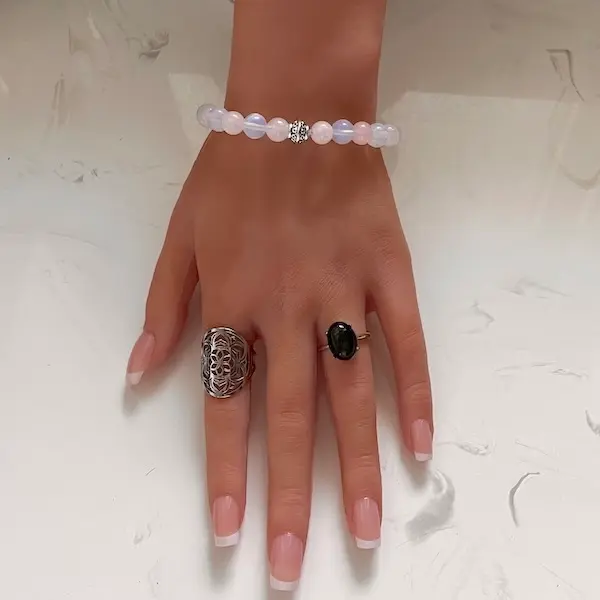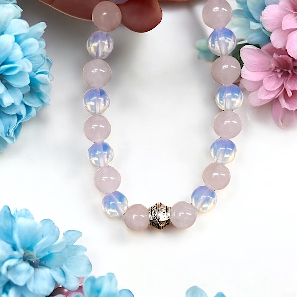 Opalit & Rosenkvarts Armbånd – Blid Harmoni for Kærlighed og Balance 💞