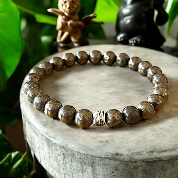 Håndlavet pyrit krystalarmbånd – styrke og elegance i ét 🤎