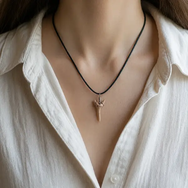 Et hajtand vedhæng kan fungere som en daglig påmindelse om din egen styrke og evne til at stå fast.