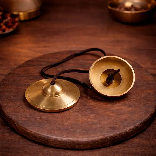 Når klokkerne slås let mod hinanden, udsender de en høj, klar tone, der hjælper med at løfte energien og samle opmærksomheden i nuet.